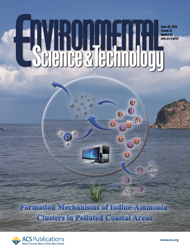 相关研究成果以“Formation Mechanisms of Iodine-Ammonia Clusters in Polluted Coastal Areas Unveiled by Thermodynamic and Kinetics Simulation”为题,发表于环境领域权威期刊Environmental Science & Technology上,并被选为补充封面。